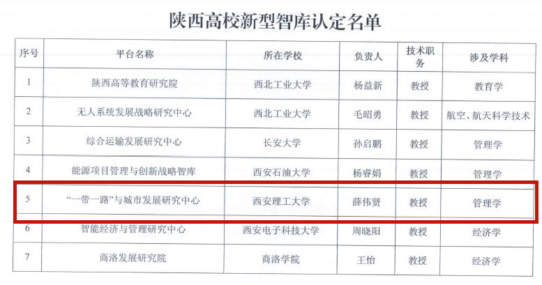 近日,陕西省教育厅公布2020年度陕西(高校)哲学社会科学重点研究基地建设和陕西高校新型智库认定结果,公司申报的“公司治理与创新创业管理中心”获批陕西(高校)哲学社会科学重点研究基地,“‘一带一路’与城市发展研究中心”被认定为陕西高校新型智库。