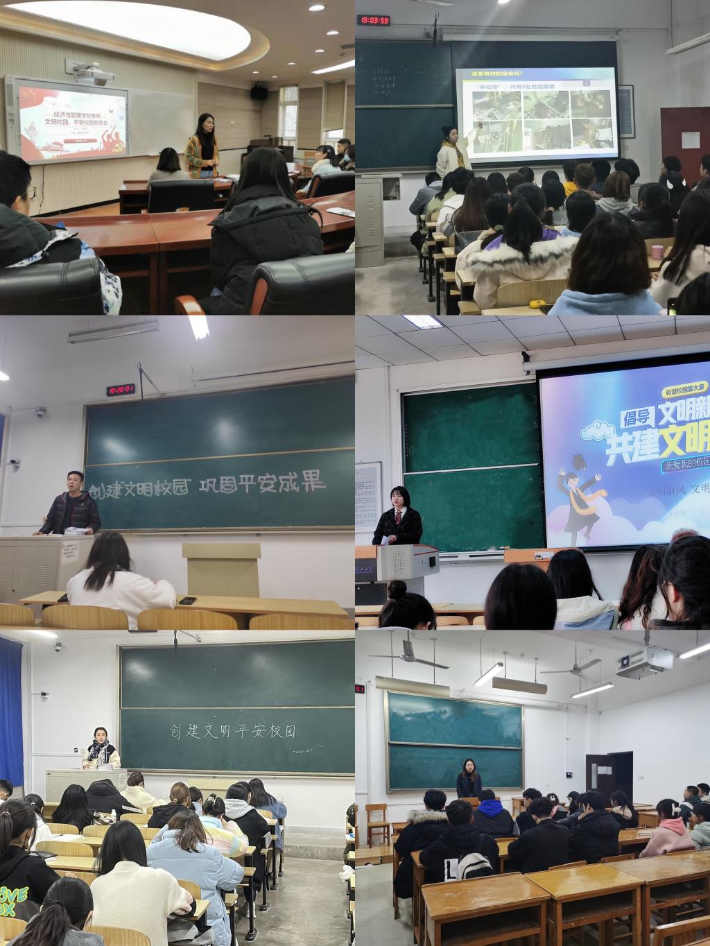 此次主题教育班会由各年级辅导员主持开展,各班同学认真学习了《平安校园评估认定工作宣传手册》《创建陕西省教育系统文明校园宣传手册》等政策文件,并联系各班生活实际,从校规校纪、行为举止、文明平安宿舍创建等方面展开研讨,对身边的先进模范典型及文明宿舍标杆进行了学习。通过此次主题教育班会,同学们纷纷表示要争做文明员工,共护平安校园。