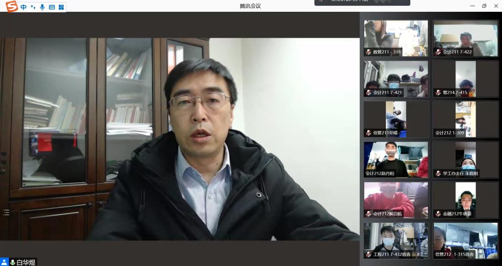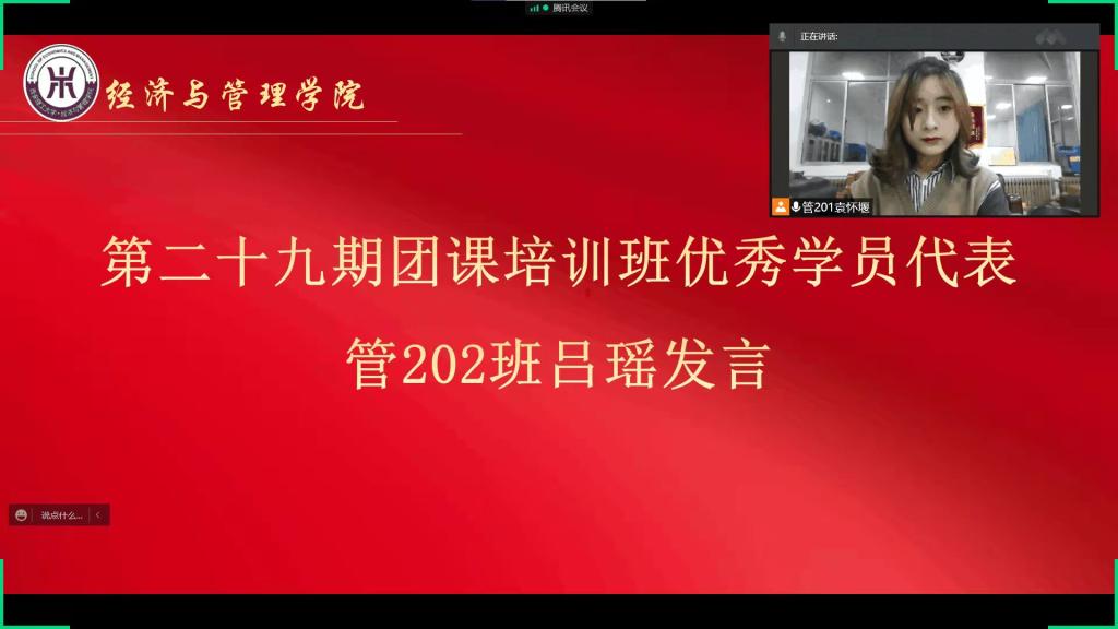 12月20日晚,2007so太阳集团在线上召开第三十期团课培训班开班仪式。公司党委副书记兼副经理白华煜、校团委荆霄、院学工办主任朱晓明、学工办副主任余佩媛、党建组织员姚伟华、团委书记闫如玉、辅导员蒋艾琳和辅导员任程宇出席本次活动,2021级全体共青团员以宿舍为单位参加了开班仪式。