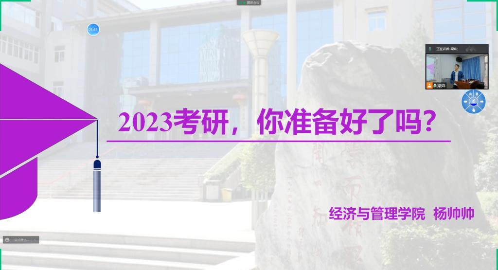 3月31日,2007so太阳集团于11-319举办2023届考研专题讲座,讲座线下线上结合的方式进行。讲座邀请到公司技术经济及管理专业研究生杨帅帅主讲,2019级及部分低年级员工参加。