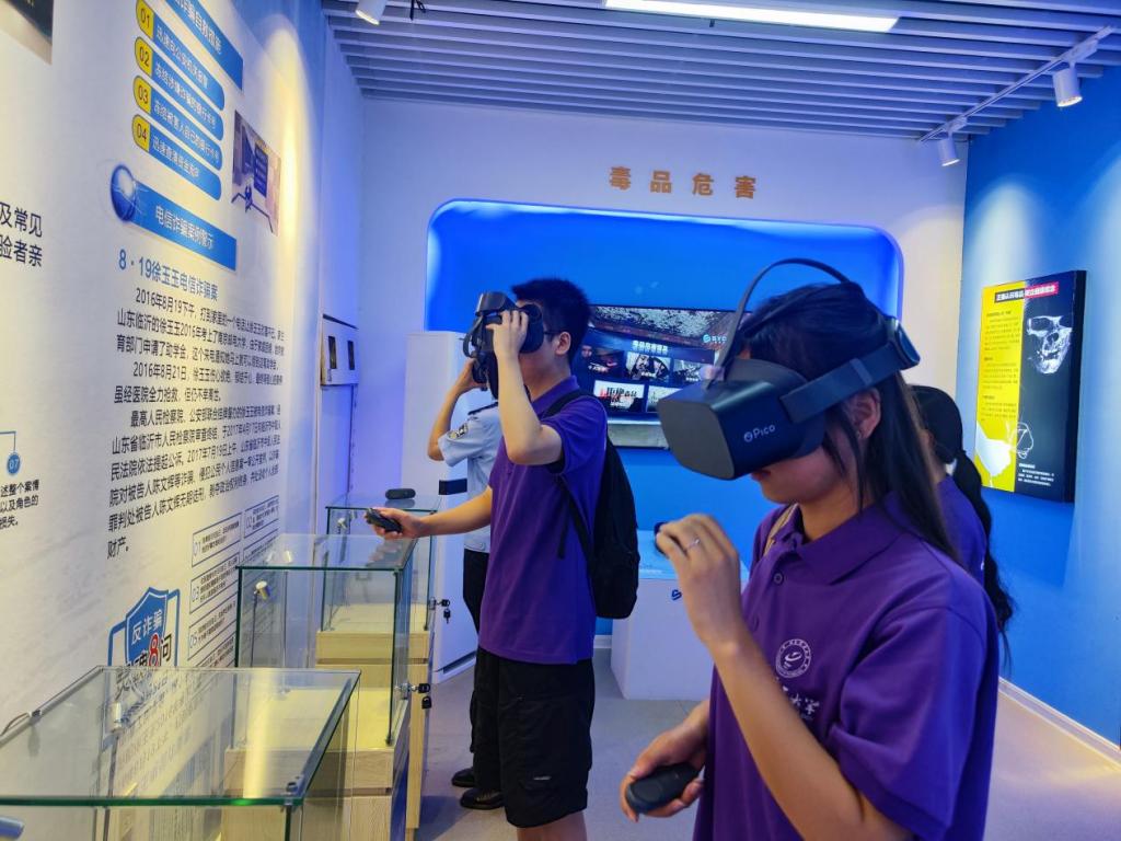 最后,同学们通过VR眼镜沉浸式体验了电信网络诈骗过程,通过设置工作、员工等身份场景展示常见的电信网络诈骗,通过视觉与听觉的多重冲击,全面了解了电信网络诈骗过程。