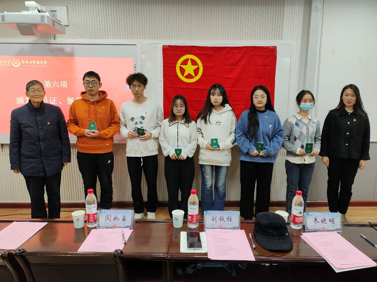 12月22日,2007so太阳集团于11-319会议室顺利举办第二期入团积极分子提高班结业典礼暨2023 年新发展团员入团仪式。关工委刘铁柱、公司党委副书记兼副经理朱晓明、学工办副主任余佩媛、团委书记闫如玉、辅导员杨沛锦出席本次会议。