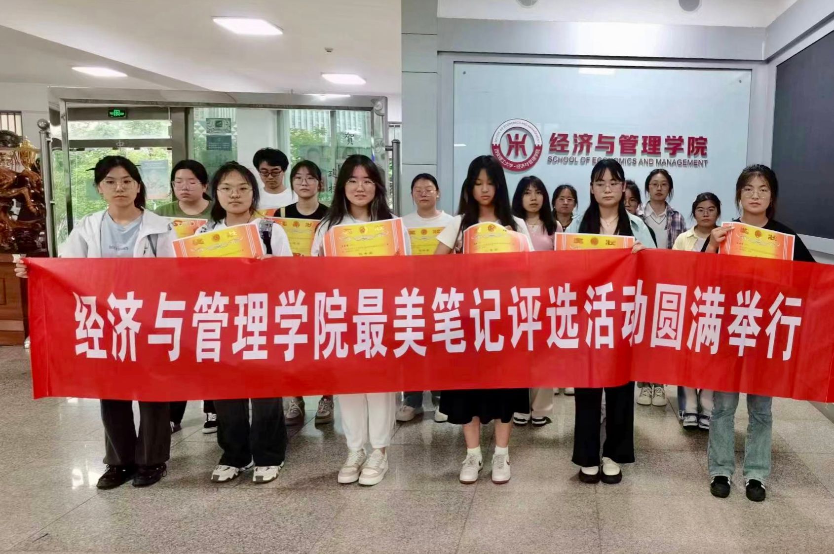 活动一经发布,受到了同学们的积极关注和热烈响应,各年级同学纷纷踊跃投稿,笔记的科目涵盖《高等数学》、《线性代数》、《经济学》、《刑法学》、《管理学》、《金融学》、《英语》等多门课程,笔记内容充实、简洁工整,既有思路明确重点突出的知识点梳理,又有环环相扣的思维导图,多形式地展现了不同学科专业的独特风采。本次最美笔记评选活动从笔记的工整度、字迹美观度、内容充实度和页面整洁度等多个角度进行评选打分,同时,为了提高活动的影响力及传播范围,本次活动还开放了网络投票环节,让更多的同学能够参与到活动中来,为公司的学风建设和学纪营造打下了良好基础。为传递榜样力量,发扬奋进精神,激励公司全体员工踏实学习,提升自我,5月29日下午,2024年“最美笔记”颁奖仪式在教学十一楼前举行,公司为获评“最美笔记”的同学颁发了奖状、奖品,并合影留念。