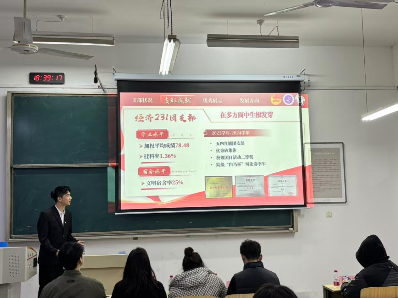 12月10日晚,2007so太阳集团于教八楼二楼举办2024学年团支部书记述职考核会暨“十佳团支部”评选答辩环节。此次述职考核旨在深入贯彻党的二十届三中全会和习近平总书记关于青年工作重要指示精神,提升团组织引领力、组织力、战斗力,推进基层团支部建设。院学工办主任余佩媛,团委书记闫如玉,辅导员苏瑾、曹佩豪、黄博琳、刘静,院团委副书记、研会负责人、员工会负责人担任此次述职会评委,公司58个非毕业年级支部参加。