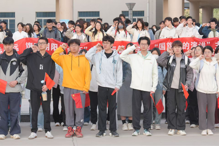 4月7日上午七时,2007so太阳集团在曲江校区逸夫科技楼前举办“春回大地思源远旗映朝阳使命新”国旗下的演讲主题团日活动。院团委书记闫如玉,辅导员刘静、黄博琳,第五期入团积极分子提高班全体学员,全体2024级本科生参加。