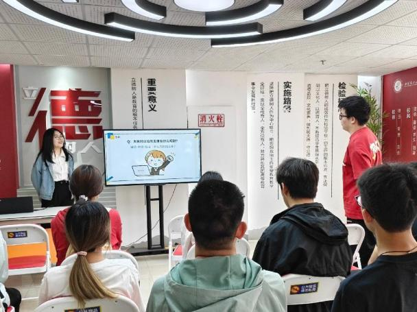本次班会特邀公司大四员工陈璐怡担任主讲嘉宾。会议伊始,陈璐怡从自身经历出发,坦言大一时也曾因专业课程跨度大而感到迷茫。她建议学弟学妹,课堂学习是根基,但更要主动探索兴趣方向,通过选修课、科研项目或自身特长,找到自己的“长板”。此外她还分享了在学而思实习的经历,鼓励同学们通过校内实践、导师推荐、企业官网等多渠道争取机会。在提问环节中,同学们围绕“如何寻找实习机会”“非技术岗位的竞争力提升”“考研与就业如何抉择”等问题展开讨论,陈璐怡一一解答并为学弟学妹们提出了忠告“机会是留给有准备的人。”