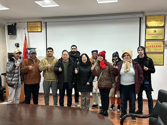 王瑞生书记亲切地与国际员工进行了交流,询问了同学们的基本情况,介绍了中国传统节日“春节”的风俗习惯,希望同学们利用学习之余能够更好地体验中国文化。同时,特别强调了寒假注意防火安全,要求同学们做到人走断电,在校严禁使用大功率电器、在宿舍严禁生火做饭等注意事项。最后预祝同学们春节愉快。