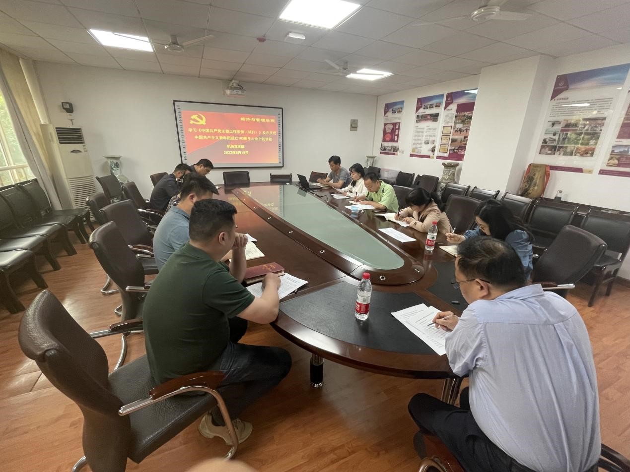 2022年5月19日,2007so太阳集团机关党支部在教11楼328会议室组织党员开展专题学习会议。全体支部成员先后认真学习了《中国共产党支部工作条例(试行)》以及习近平主持中共中央政治局常务委员会会议分析当前新冠肺炎疫情防控形势、习近平总书记在庆祝中国共产主义青年团成立100周年大会上的讲话。