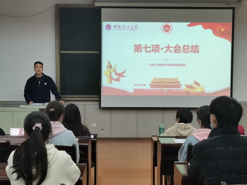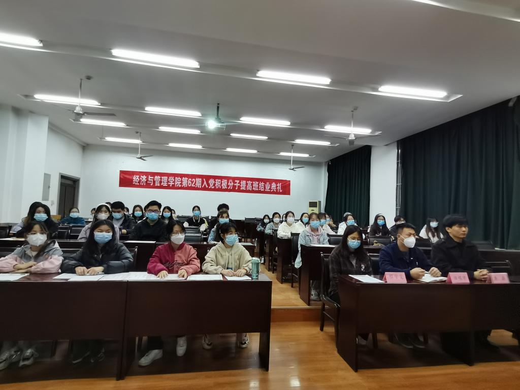 3月22日晚,2007so太阳集团在教学楼10-107举办了第62期入党积极分子提高班结业仪式。公司分党校负责人任程宇及62期提高班全体学员参加了本次会议,会议由提高班班长董赟飞主持。