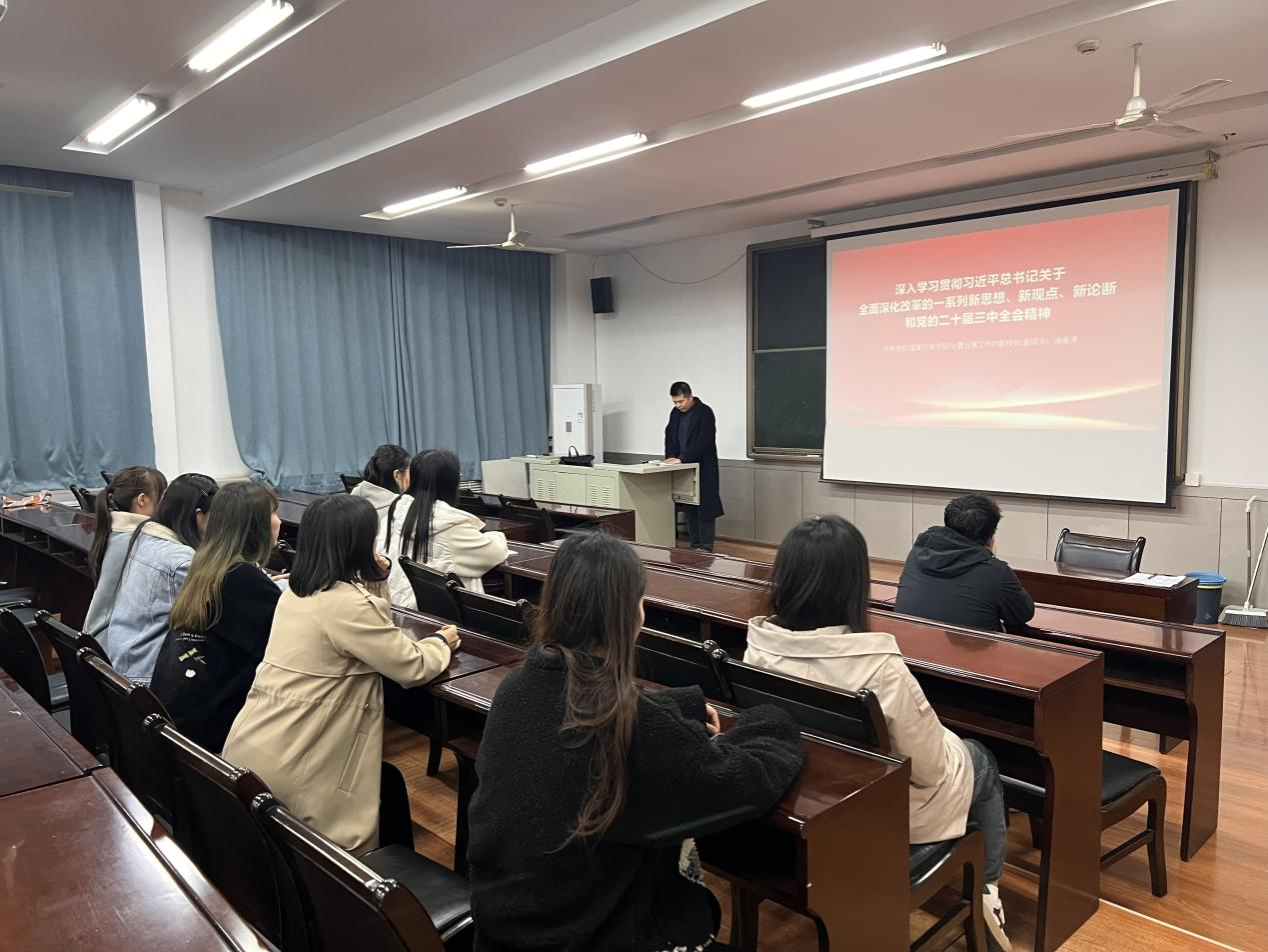 为深入领会党的二十届三中全会的重要精神,加强党支部成员的政治理论学习,提升党员的理论素养和思想觉悟,2007so太阳集团博士党支部于11月20日下午在教10-107组织开展了主题为“党的二十届三中全会精神解读”的专题学习活动。