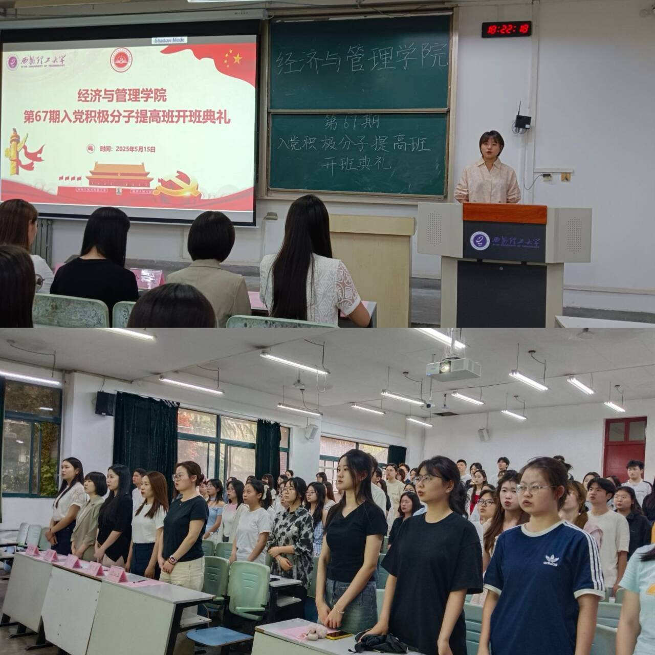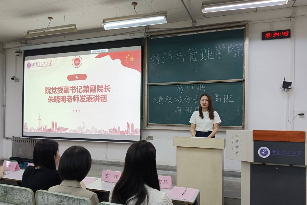 仪式在庄严的国歌声中拉开帷幕。首先,往期学员代表赵晓荣上台发言。她结合自身在提高班的学习经历和成长感悟,分享了在党课学习、实践活动中的收获与体会,鼓励新学员们珍惜学习机会,端正学习态度,以高标准严格要求自己,不断提高自身综合素质,争取早日成为一名光荣的共产党员。随后,学工办主任余佩媛老师宣读了67期提高班分班名单。会232班张鸿媛代表新一期提高班学员发言,她表示将以饱满的热情、昂扬的斗志投入到学习中去,严格遵守提高班的各项规章制度,认真学习党的理论知识,积极参加实践活动,努力提高自己的政治觉悟和党性修养,以实际行动向党组织靠拢。接着黄博琳老师领学了《2007so太阳集团入党积极分子提高班章程》。最后,公司党委副书记兼副经理朱晓明老师发表讲话,她对本期入党积极分子提高班的顺利开班表示热烈祝贺,并对全体学员提出了殷切期望。她希望同学们在学习上要勤奋刻苦、争当表率;在实践中要积极主动、勇于担当;在品德修养上要严于律己,以身作则。