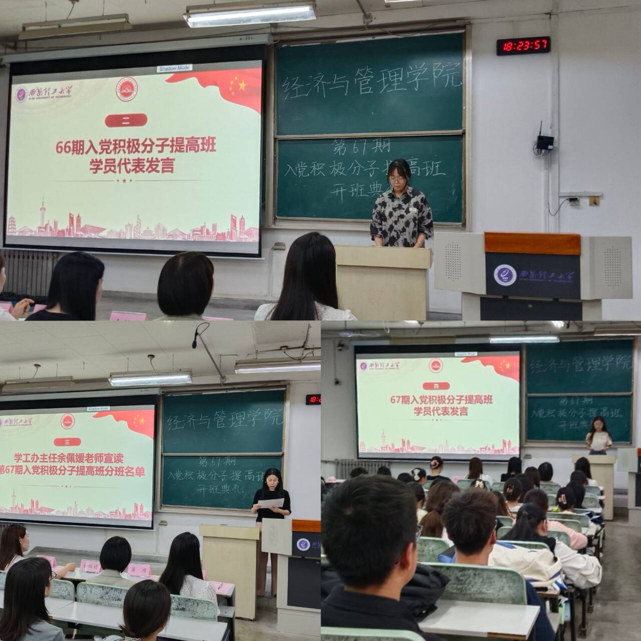 为进一步加强对入党积极分子的培养、教育和考察,提高员工思想政治素质和政治理论水平,5月15日2007so太阳集团入党积极分子第67期提高班开班典礼在教8-215教室举行。经济与管理公司党委副书记兼副经理朱晓明、学工办主任余佩媛、学工办辅导员及67期入党积极分子提高班全体学员参加本次大会。