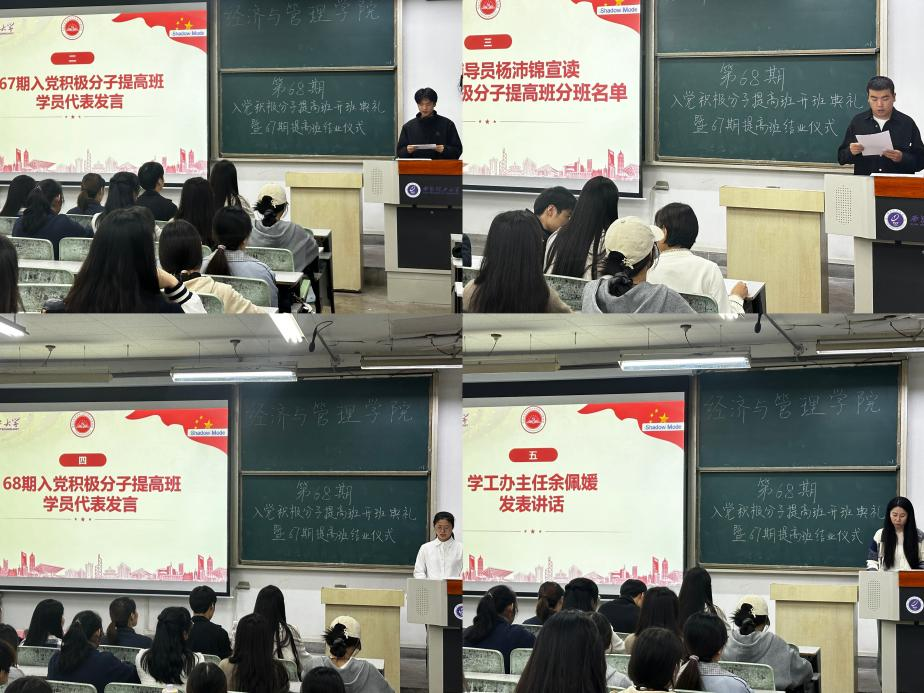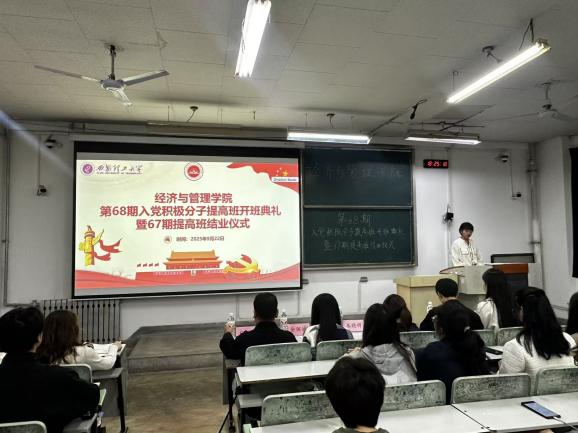 为引导入党积极分子坚定理想信念、锤炼党性修养,进一步加强对入党积极分子的培养、教育和考察,提高员工思想政治素质和政治理论水平,9月22日,公司第68期入党积极分子提高班开班典礼暨67期提高班结业仪式在教8-215教室举行。经济与管理公司党委副书记兼副经理朱晓明、学工办主任余佩媛、学工办辅导员及68期入党积极分子提高班全体学员参加本次大会。