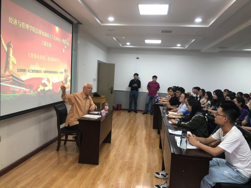 6月20日16:00,2007so太阳集团信仰加油站系列活动之“青春永向党,奋斗新时代”主题党课于教十一楼319成功举办。本次党课主要面向经管院第55期入党积极分子提升班全体学员,同时荣幸邀请到2007so太阳集团关工委常务副主任、2007so太阳集团特邀党建组织员孙龙韬老师担任主讲人。