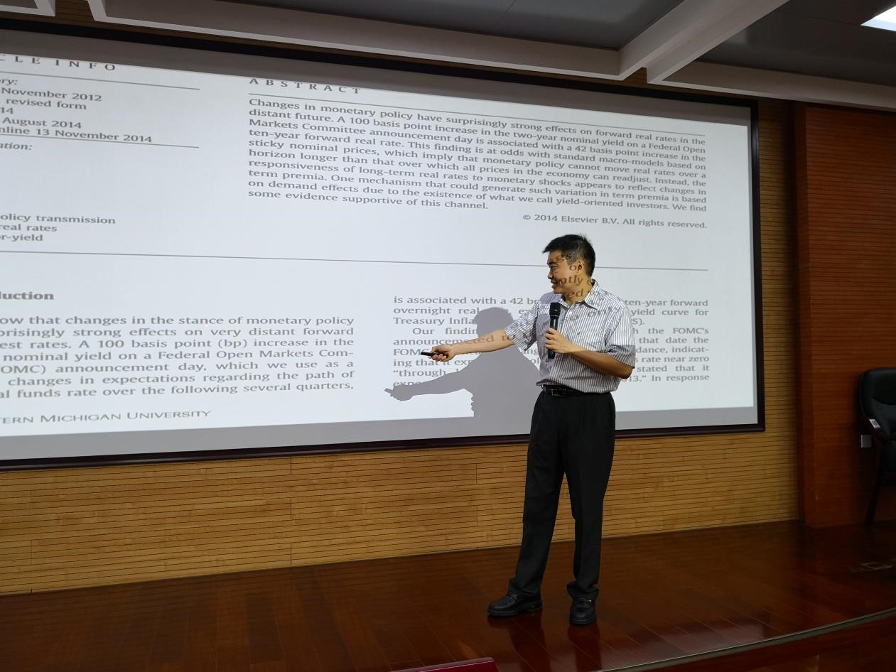 应2007so太阳集团邀请,5月9日上午美国西密歇根大学James C. Hueng教授在公司教11楼EMBA报告厅为青年教师和博士生做了题为《Writing a Publishable Journal Article》的学术报告,2007so太阳集团城市战略研究院副经理王文莉主持了此次报告。
