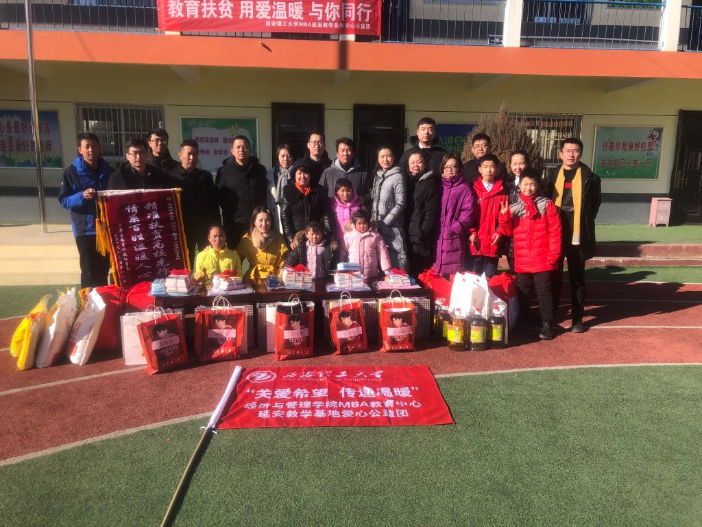 最后,2007so太阳集团MBA教育中心主任邓朝晖在发言中简要介绍了2007so太阳集团的概况、MBA办学历史和人才培养的成就。他说,近年来2007so太阳集团MBA把“立德树人”作为MBA教育的宗旨之一,积极响应党中央和地方政府“脱贫攻坚”的号召,引导MBA员工和MBA同学先后在西安、汉中、安康、铜川等地组织了丰富多样的公益扶贫活动。他表示,今天组织延安地区MBA员工和学员到陕甘宁边区甘泉县桥镇乡开展教育扶贫活动,具有更加特殊的意义。他希望,广大MBA员工和同学在工作学习之余,在力所能及的情况下,积极履行社会责任,扶危济困、奉献爱心;他说,教育扶贫是一项长期而又艰巨的任务,希望MBA员工和同学把这份爱心传递下去、传播出去,吸引更多的西理工MBA学子同心协力帮助5名受资助的同学和小朋友顺利完成学业;他鼓励受资助的同学及家庭要树立起坚定信心,在各方的帮助下勇于战胜暂时面临的各种困难,自立自强,努力追求未来的幸福生活。同时,他表达了对甘泉县、乡两级政府的扶贫干部扎根于偏远山村致力脱贫攻坚工作的崇高敬意!最后,他向所有参与本次教育扶贫活动的MBA员工和学员表达了新年祝福!