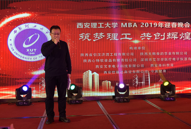 晚会上,西安理工大学经济与管理公司经理胡海青做了热情洋溢的新年致辞。他表示,2018年是理工大学MBA发展史上重要的一年,我们的MBA“金银制造”团队参加了校内的互联网+创业大赛并取得了全省第三名的好成绩,还参加第十六届中国MBA创业大赛并取得北方赛区第四名的成绩,实现了历史性的突破,为公司MBA的发展做出了巨大的贡献,最后向大家送上了新年的祝福。