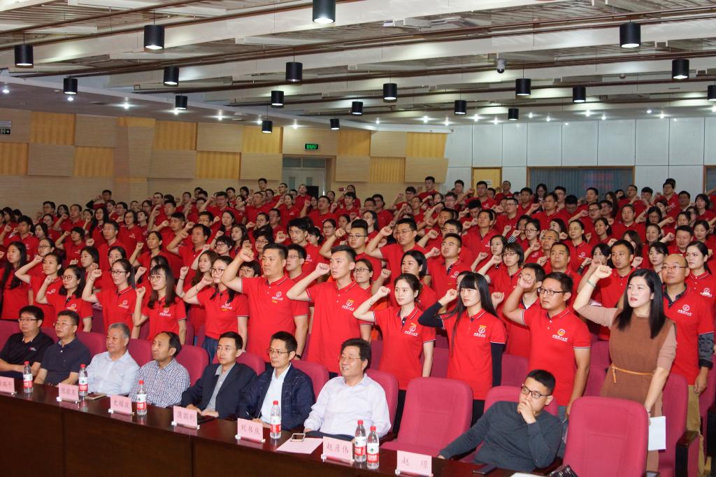 2018级MBA员工程敏杰、关汉杰做为新生代表在典礼上发言。他们表示将珍惜机会,刻苦学习,努力提升自身综合素质,以优异的工作的成绩回报母校,服务社会。此后,2018级全体MBA学员先后进行佩戴校徽、入学宣誓环节。