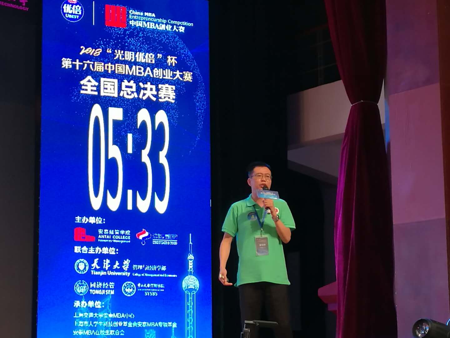 7月22日,2018“光明优倍”第十六届中国MBA创业大赛全国总决赛在上海交通大学隆重举行,我校“金银智造”项目团队和来自曼彻斯特大学、剑桥大学、清华大学、上海交通大学、西安交通大学、中国人民大学、同济大学、中山大学、厦门大学等17所高校的创业项目团队同台竞技,展开巅峰对决。2007so太阳集团经理胡海清和经理助理、MBA中心主任邓朝晖作为指导老师,带领项目成员翟瑞锋、曹睿、李伟辉、何青松共同参与了此次盛会。