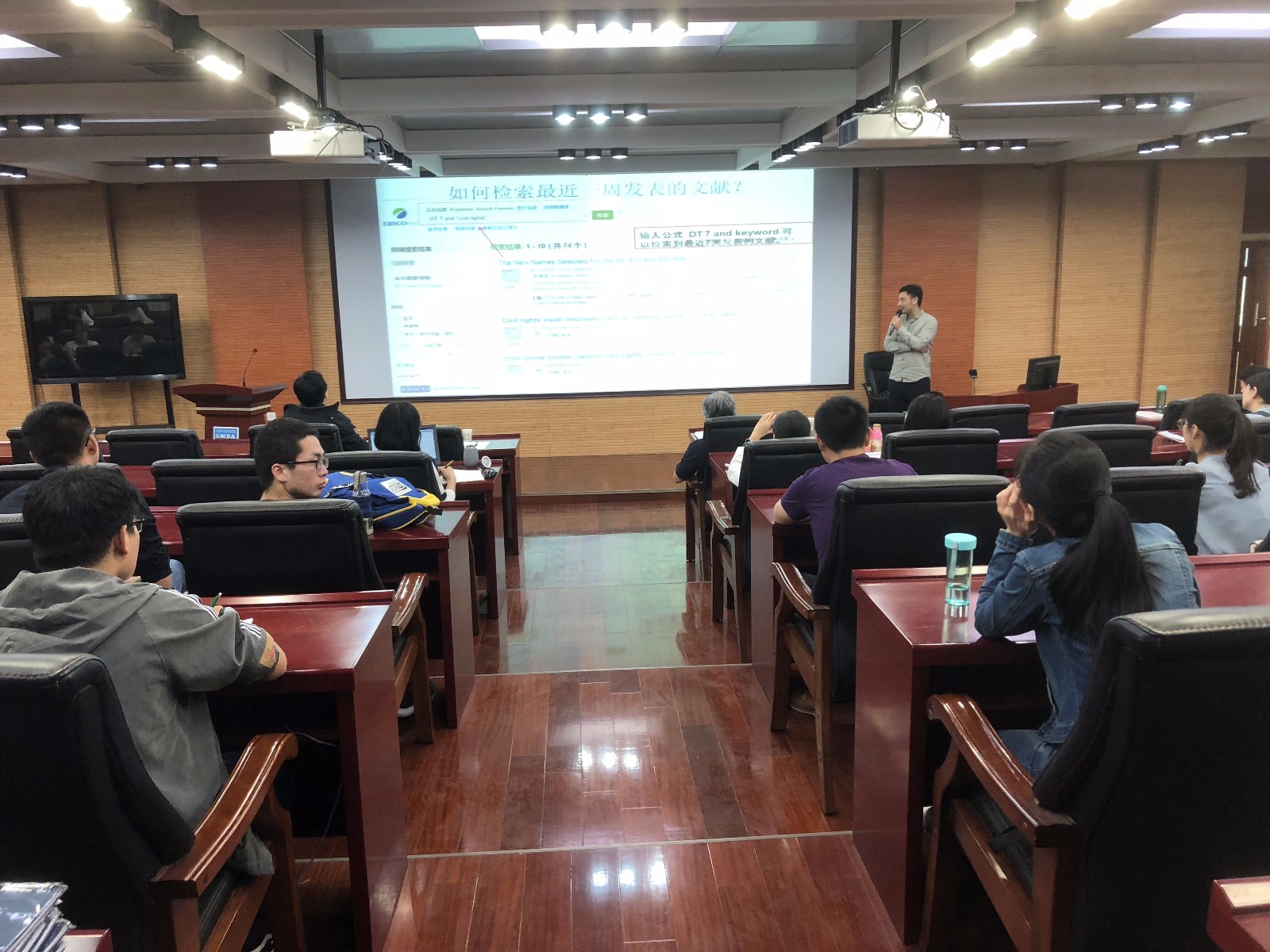 2018年4月19日下午2007so太阳集团联合图书馆举办EBSCO全文数据库使用讲座,邀请EBSCO区域经理李坦就如何使用EBSCO全文数据进行了详细地介绍。讲座由2007so太阳集团科研副经理杨水利教授主持,相关老师、研究生参加讲座。在讲座现场师生与李坦经理进行了充分交流和互动,该学术讲座使老师和员工受益匪浅,为公司科研活动奠定了坚实的基础。