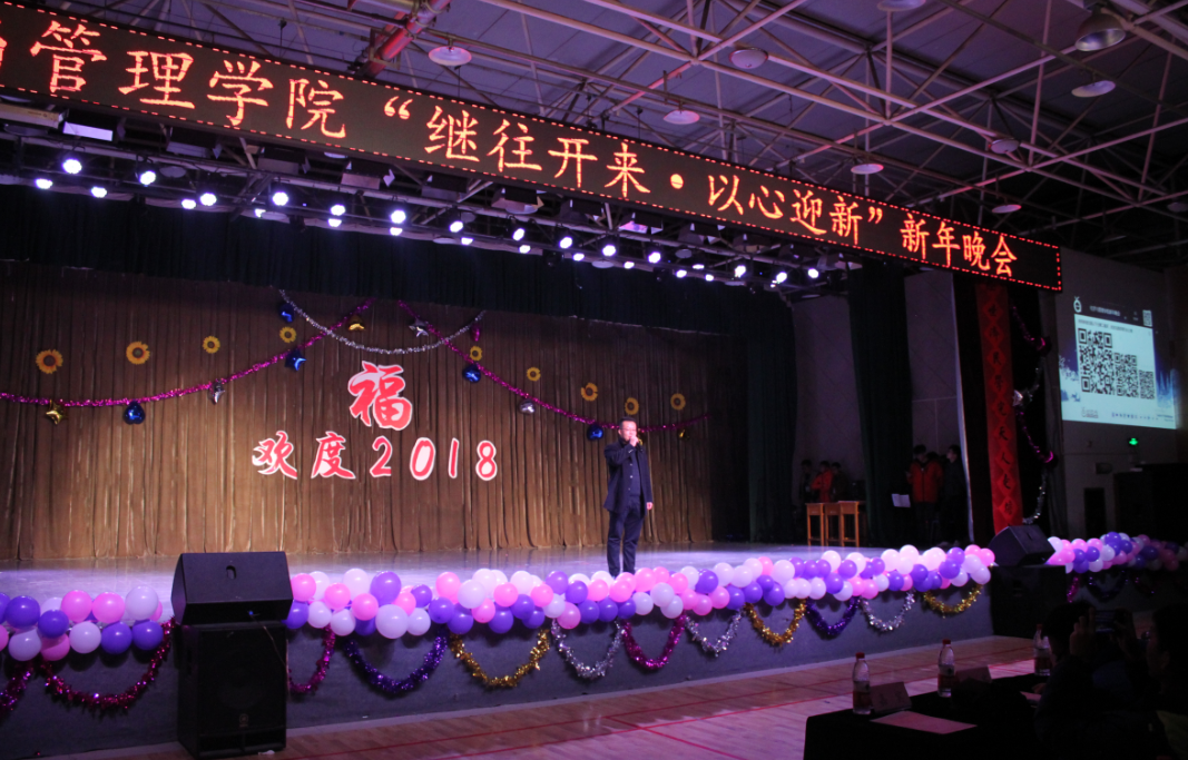 12月29日19时,2007so太阳集团“继往开来,以心迎新”新年晚会于曲江校区老员工活动中心二楼成功举办。出席此次新年晚会的嘉宾有:经济与管理公司党委书记王瑞生,经理胡海青,党委副书记兼副经理宗娜,副经理王艳,学工办主任赵玉强,团委书记兼学工办副主任朱晓明、公司部分老师及辅导员,2007so太阳集团17级同学参加了本次晚会。