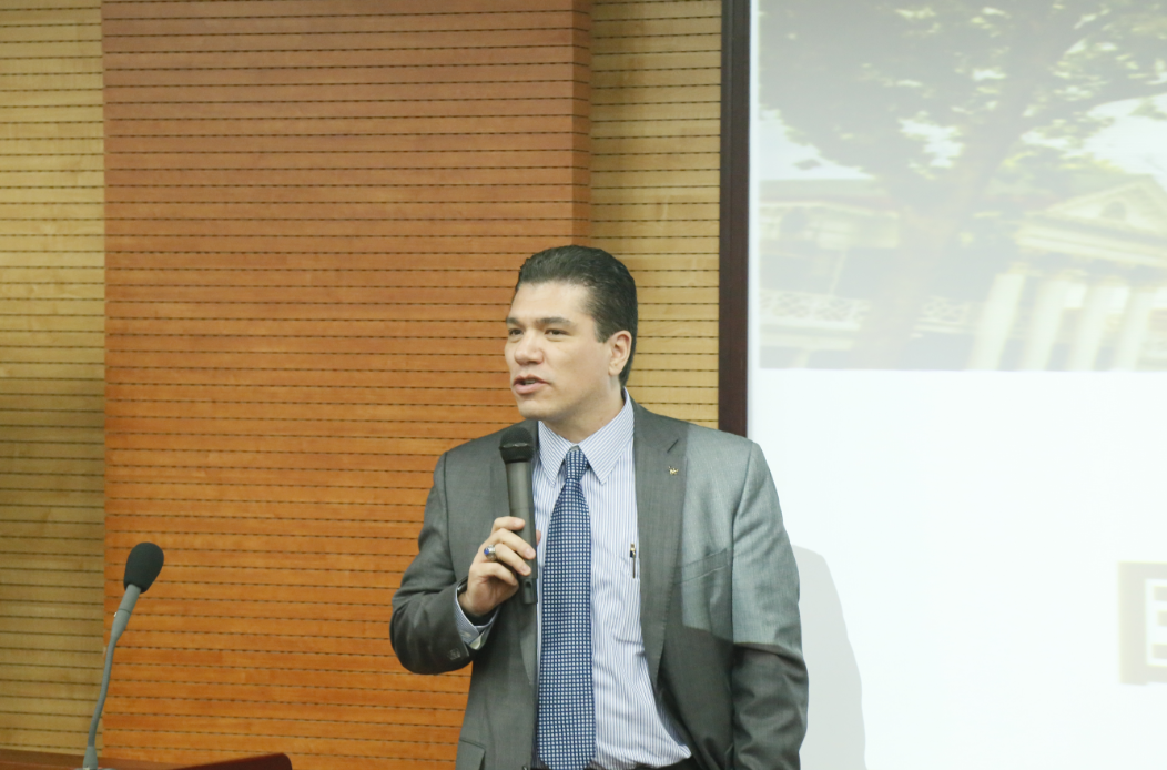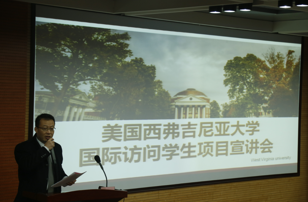 国际合作项目宣讲会由胡海青经理主持。美国西弗吉尼亚大学副董事长威廉•布鲁斯坦教授致辞并介绍了西弗吉尼亚大学的基本情况,并与参会师生就员工出国留学和国际合作办学新趋势等问题进行了探讨与交流。西弗吉尼亚大学商公司经理哈维尔•雷耶斯教授详细介绍公司发展现状和专业特点。西弗吉尼亚大学合作项目代表中国工商中心副主任赵忠民老师就此次国际访问员工合作项目做详细讲解,其中包括暑期类访问项目、学期学分项目、2+2、2+1双学位项目、MBA\EMBA等合作项目,宣讲会取得圆满成功。