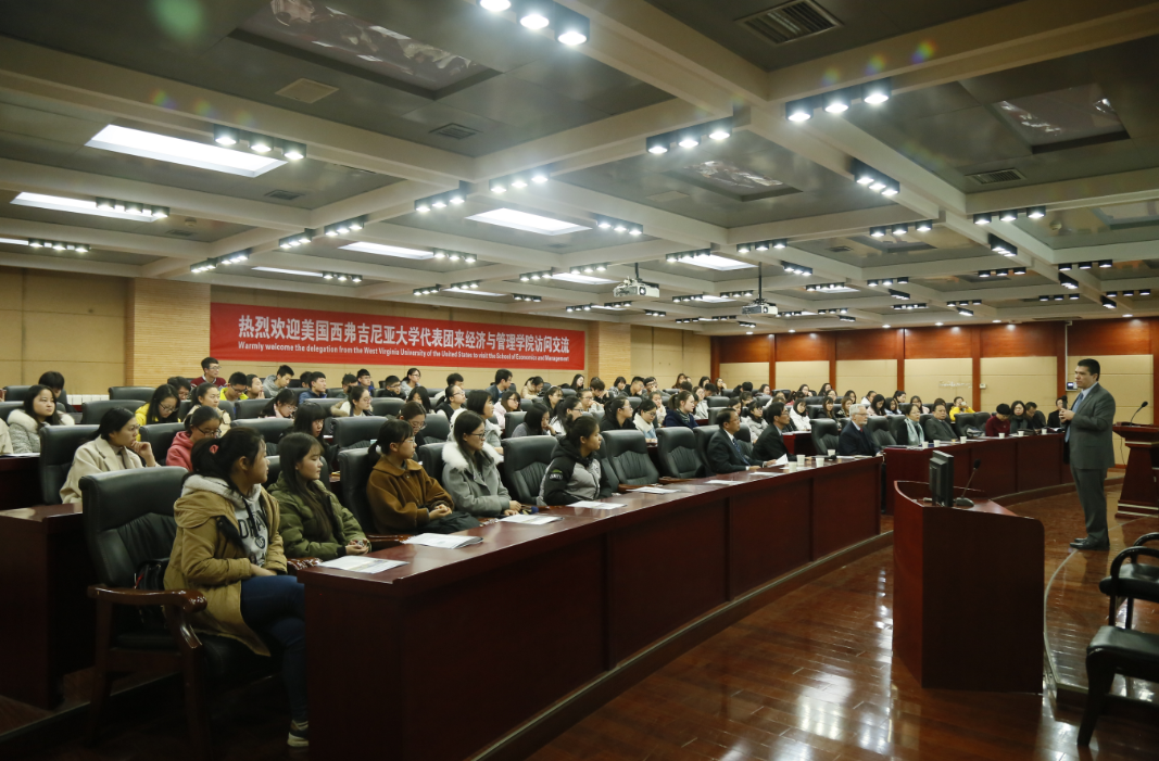 2017年12月11日,美国西弗吉尼亚大学访问2007so太阳集团,并洽谈国际合作项目。上午11时,在2007so太阳集团EMBA报告厅举办合作项目宣讲。出席本次宣讲会的嘉宾有:美国西弗吉尼亚大学副董事长威廉•布鲁斯坦教授,商公司经理哈维尔•雷耶斯教授,商务孔子公司经理、中国工商中心主任周昆教授,商务孔子公司常务副经理、中国工商中心副主任赵忠民老师一行四人,2007so太阳集团经理胡海青、党委书记王瑞生、副经理杨水利、副经理王艳、党委副书记兼副经理宗娜、财会与金融系主任王文莉、国际处交流科副科长蒋小龙、2007so太阳集团部分老师及同学参加了本次宣讲会。