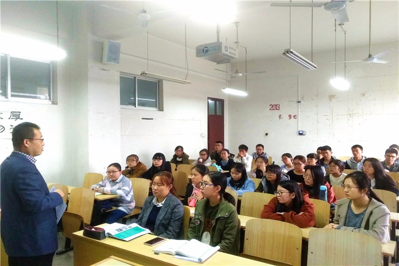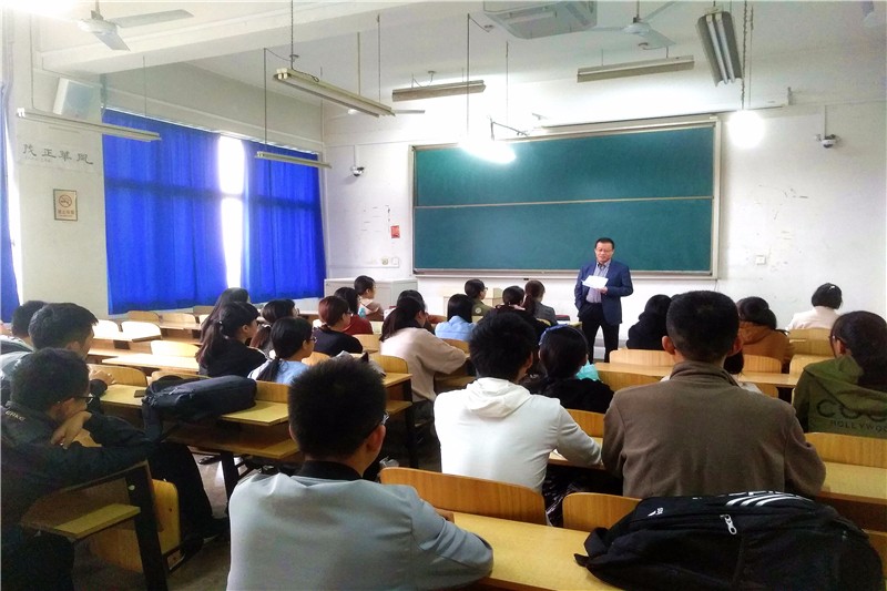 10月25日上午10时,胡海青教授于教8楼405教室为金融172班32名同学开班会。班会上,胡海青经理再次就金融学学科历史、专业前景及培养计划等内容为同学们做了详细解读,并针对今后学习中的重点、难点问题展开耐心细致的解答,他希望同学们能积极主动通过电话、短信、QQ、微信、邮件、面对面等多种渠道与自己交流沟通,携手努力做好金融172班的班级建设工作。之后,胡海青教授现身说法,用自己的亲身经历和成长过程向同学们讲述了要选择奋斗的人生,要勇于、敢于进步,他强调,改变自己、提升自我其实并不难,只要你敢想、真干、坚持。他向同学们细致讲述了自己是如何一步一步奋斗最终成为专业第一,如何从迫于无奈学习日语到学以致用出国深造,如何从腼腆内向、不善交际到运筹帷幄、活跃于员工活动一线。对同学们的大学学习与生活胡海青教授也提出了具体要求,他强调,大家要愉快地学习,但是愉快只是一个状态,重点还是要学习,要学本领、要长才干、要一专多能、要博学广才;此外,还要积极参与员工活动,充分规划利用时间,让自己充实起来,不断提升自己的社交、组织、协调、应变能力,也要积极参与体育锻炼,身强体健再谈理想。