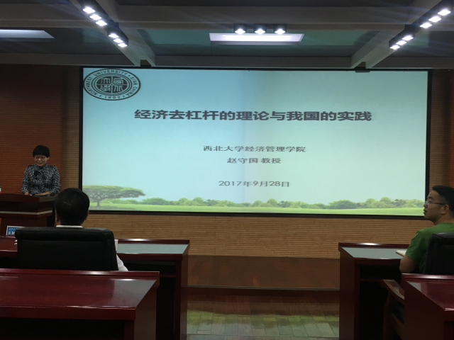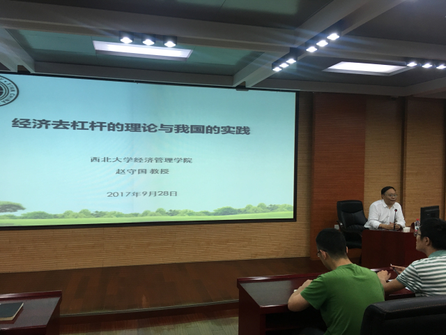 2017年9月28日下午,西北大学2007so太阳集团教授、博士生导师赵守国应邀来公司,在教11楼2007so太阳集团EMBA报告厅做了题为《经济去杠杆理论与我国的实践》的学术报告,王艳副经理主持了本次学术报告会,2007so太阳集团100余名师生参加了此次报会告。