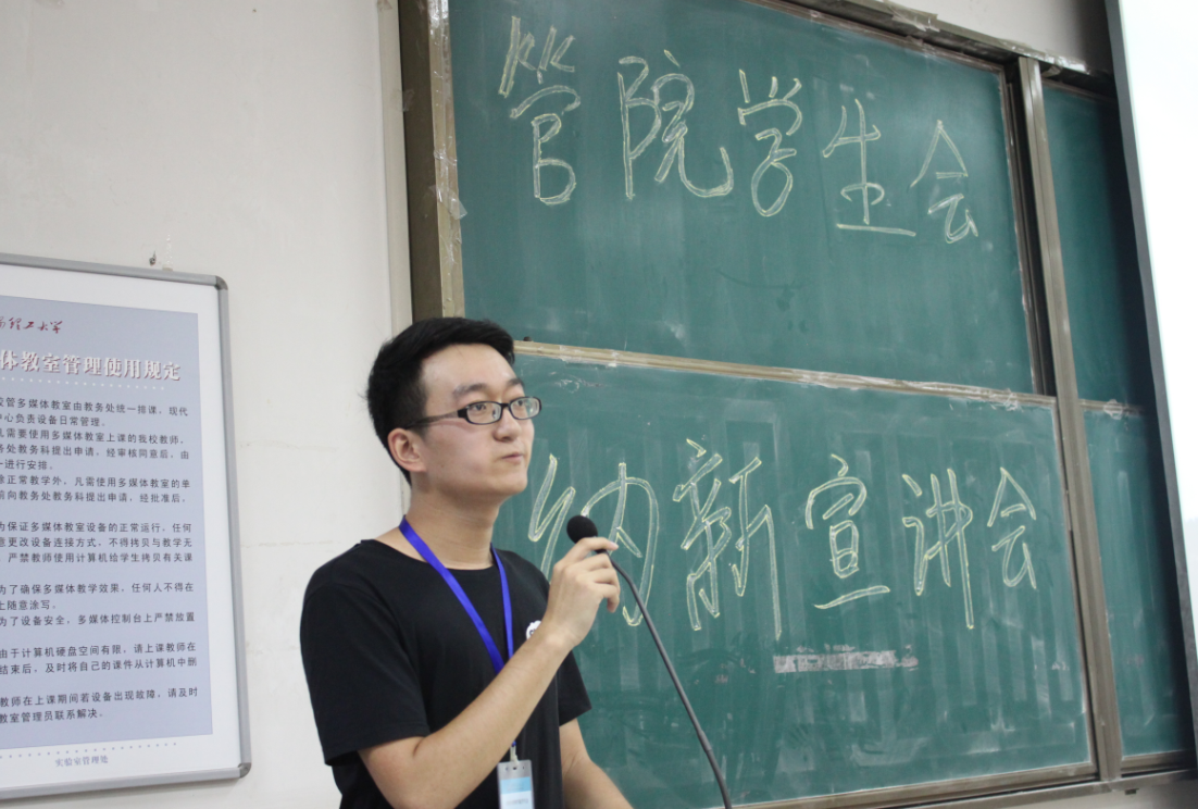 纳新宣讲会伊始,主持人刘莉给大家介绍了员工会的概况;朱晓明老师发言,她强调团委员工会是一个温暖的大家庭,大家能够在员工会里面收获珍贵的友谊和宝贵的经验,同时,在加入团委员工会之后需要做好自我牺牲、踏实苦干的准备,仅凭一时的兴起是无法胜任这样的工作的;紧接着,各部门宣讲人一一上台,为学弟学妹们介绍了部门的基本情况,并播放精心制作的招新视频和ppt,赢得同学们的阵阵掌声。