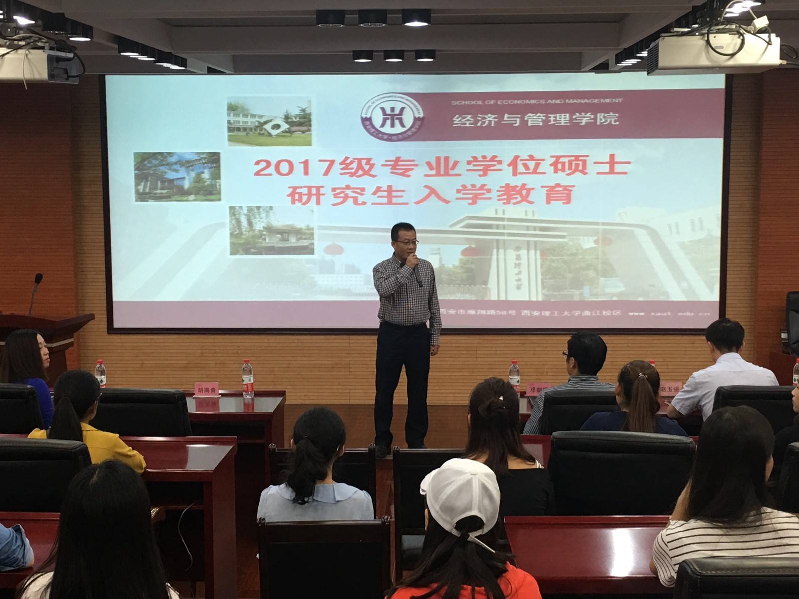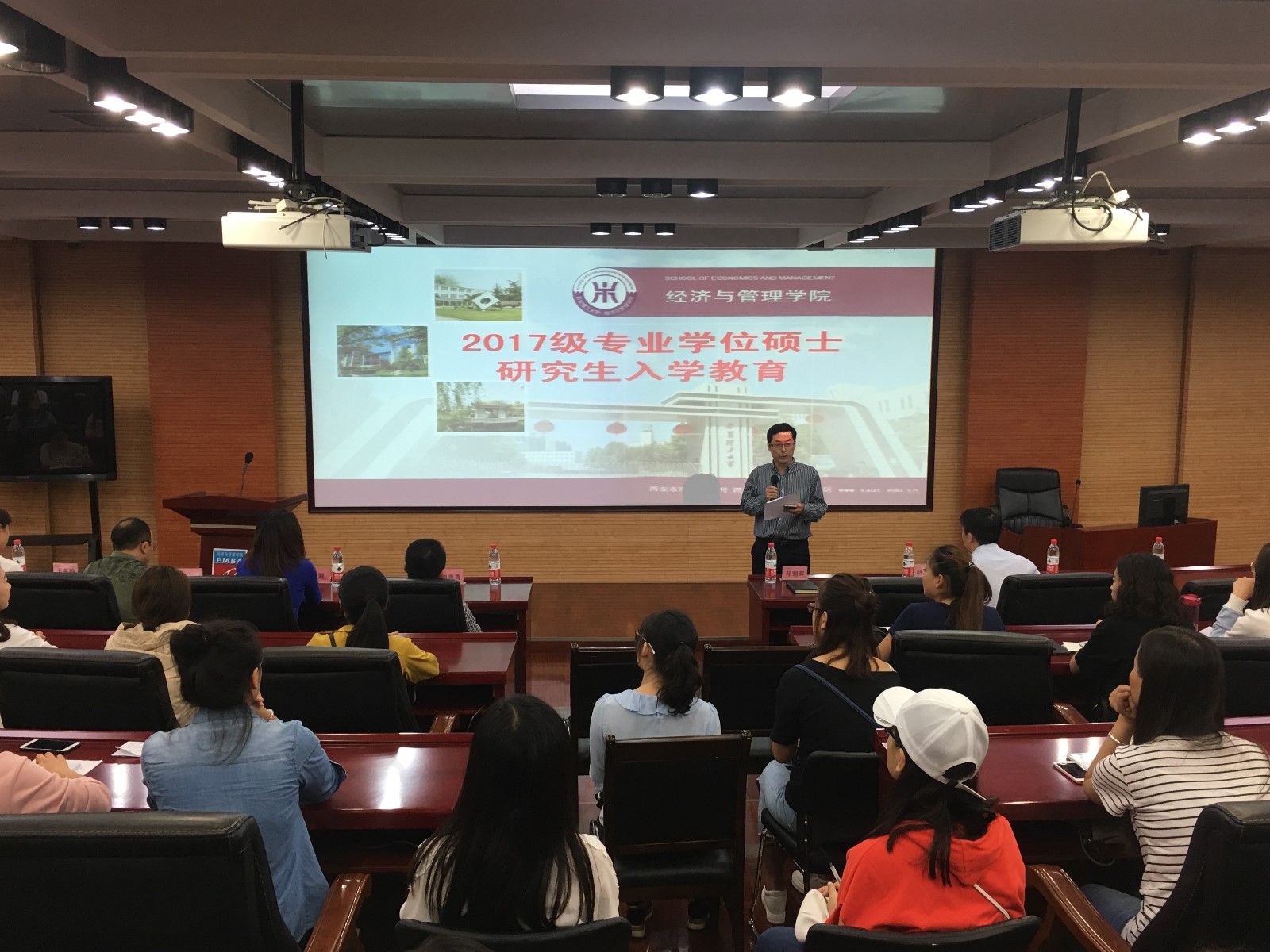 2017年9月3日下午,2007so太阳集团专业学位中心在EMBA报告厅举行了2017级专业学位硕士研究生入学教育,2007so太阳集团经理胡海青教授,党委副书记兼副经理宗娜,专业学位中心主任邓朝晖,副主任张博和王书玲,学工办主任赵玉强,专业学位中心全体老师参加会议。