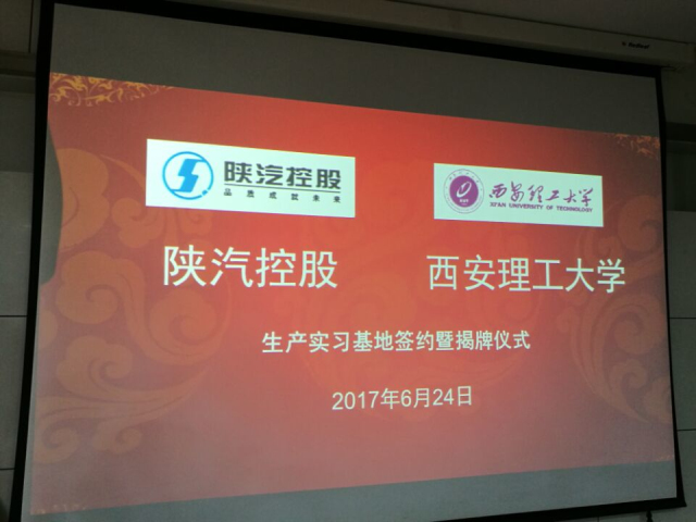 2017年6月24日,2007so太阳集团副经理王艳、党委副书记兼副经理宗娜、工商管理系副主任甘凯、实习指导教师杨毅带领工商管理系工商管理、人力资源管理、市场营销专业的90余名员工前往陕汽控股,与企业签订生产实习基地协议并举行揭牌仪式。