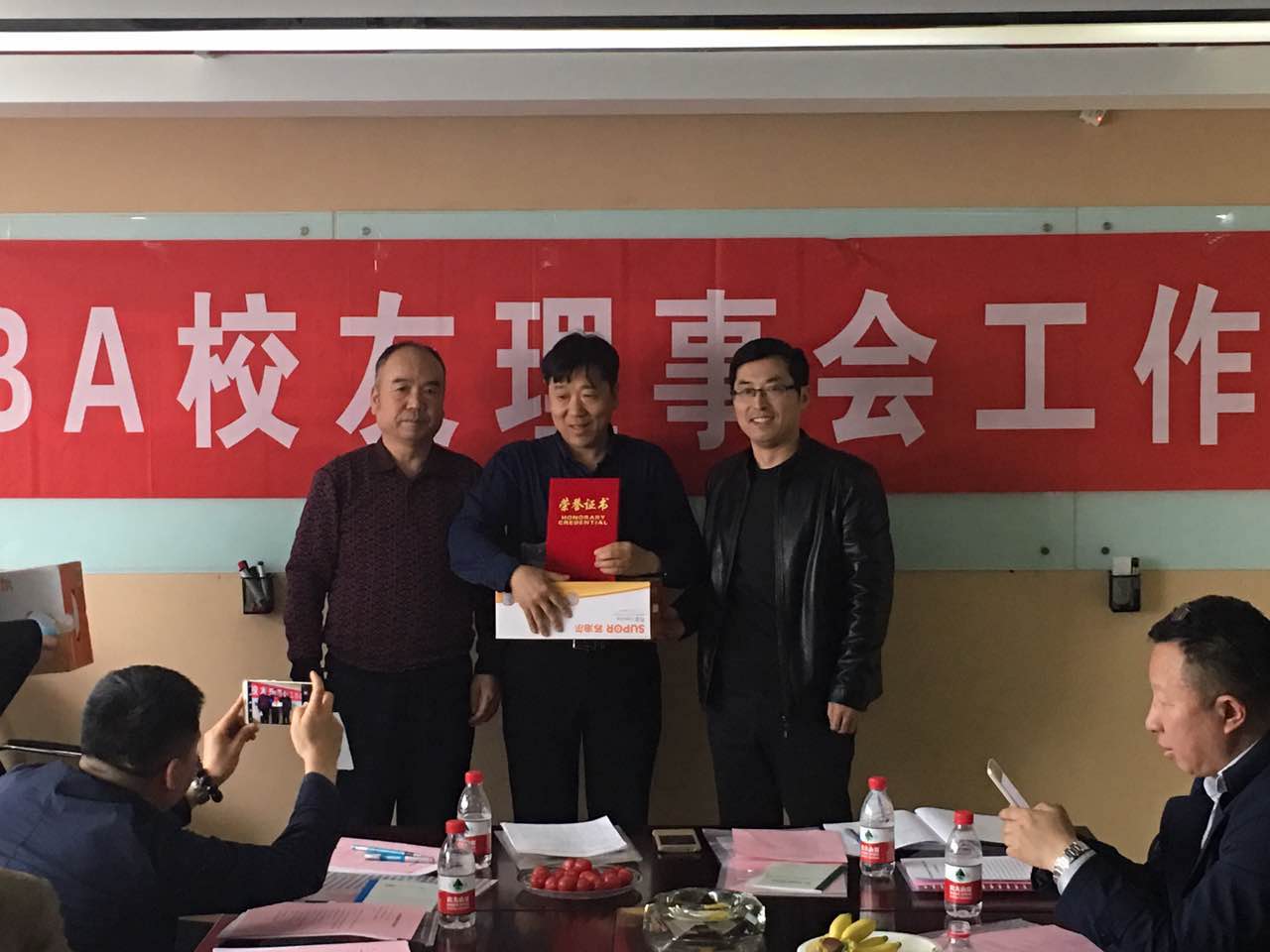 2017年MBA员工会将在动员员工参与、学术交流、企业咨询、文体生活、对外合作交流等方面加大工作力度,充分发挥和调动各位理事和员工积极性,齐心协力,扎扎实实做好MBA员工会工作,以实际行动迎接党的十九大召开。副秘书长王芳芳对会费收支和捐赠收支管理情况作了汇报;”文体生活部部长赵玉强对2016年MBA员工会理事健步走活动进行了总结汇报,并为健步走成绩优秀理事发奖品和证书:各部部长对2017年工作谈了设想;张文若会长介绍了与汉中市佛坪县合作项目,希望MBA员工能够在教育培训、医疗服务、农业项目等方面与佛坪县合作。李言副董事长讲话,对MBA员工会给予了充分肯定,希望MBA员工会各位理事再接再励,办出特色,希望MBA员工会重视分支机构建设与当地员工会对接,更好的为员工服务公司将对MBA员工会的工作给予全力的支持 。胡海青经理讲话;对一年来MBA员工会的工作表示满意,对各位理事的辛勤劳动表示感谢,希望理事会成员认真履职,发展会员,充分利用员工的优势,在创业创投,实战案例等方面做出成绩,2017年公司将一如既往支持员工会工作。
