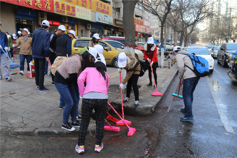 为提高老员工对城市管理工作的参与度,营造“品质西安,你我共建;品质西安,你我共享”的氛围,公司积极筹划,认真准备。3月26日上午8时,在公司学工办主任赵玉强老师、辅导员姚伟华老师的带领下,公司2013级入党积极分子和2014级公共事业管理、金融学专业共百名员工前往西安市碑林区长乐坊街道办事处参与了城市精细化管理大擦洗活动。