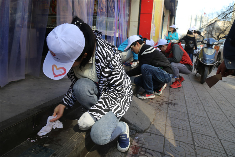 碑林区政府领导首先为广大青年志愿者讲解了活动的意义并向广大青年发出向雷锋学习的倡议。在本次活动中,教育系统承担的任务是更新街全段街面、沿街路牌及护栏的擦洗,组织者为志愿者们安排了工作任务,分配了劳动工具。