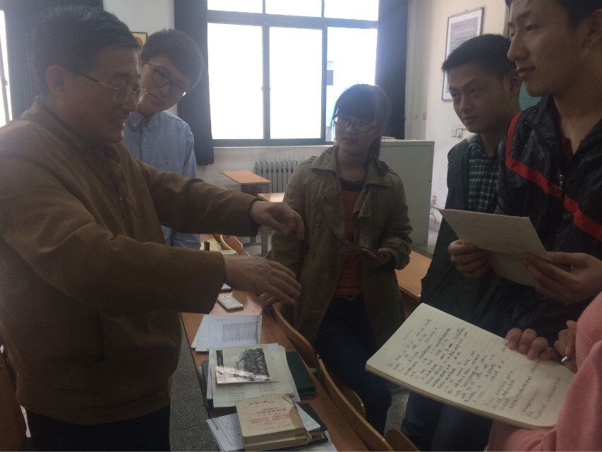 首先,刘铁柱老师与互助社的成员们进行了座谈。刘老师虽已年近古稀,但对年轻时的回忆仍历历在目,谈到有些事时不免开怀大笑,语言诙谐幽默,讲述生动感人,同学们被这气氛感染,整个座谈会在轻松的氛围里进行着。刘老师从自己的包里掏出了许多各式各样的文件,有大会入场券、六七十年代的照片、试卷、当时抄的诗集等,那一张张泛黄的纸页承载着那一段不平凡的历史和记忆。互助社的成员们争相翻阅,体味着刘老师奋进的历程与那段历史的厚重。说到上山下乡的插队经历,刘老师兴高采烈地用手比划着当时队里设计出的机械的原理,并拿出一本记录他们下乡生活的长诗,声情并茂地朗读起来,他的眼里似乎看到了四十年前的自己,而我们的思绪也带进了那段故事里。刘老师从他高中毕业开始讲起,讲述了他下乡插队,之后考上大学,大学毕业后进入单位工作,后来为了响应国家号召,作为专业型人才进入西藏进行援藏建设,在藏十一年后返乡进入2007so太阳集团,直到后来退休的不平凡经历。访谈结束时,他用《钢铁是怎样练成的》里的一句砥砺我们:“人最宝贵的东西是生命,生命对人来说只有一次。因此,人的一生应当这样度过:当一个人回首往事时,不因虚度年华而悔恨,也不因碌碌无为而羞愧;这样,在他临死的时候,能够说,我把整个生命和全部精力都献给了人生最宝贵的事业——为人类的解放而奋斗。”