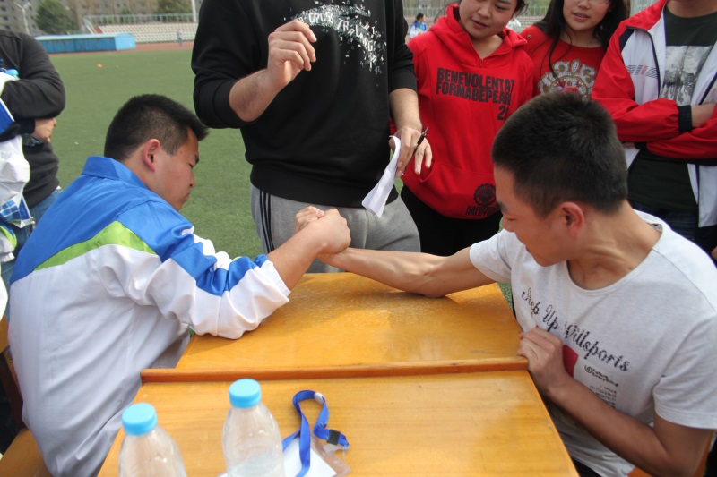 随着那熟悉却依然让人振奋的运动会进行曲的响起,激动人心的运动会正式开始。紧张刺激的100米短跑,艰难的1500米长跑,其乐无穷且竞争激烈的扳手腕……,在所有的项目上,每一次的冲刺,都扣动我们的心弦;每一次的起跳,都绷紧我们的神经;每一次的跨越,都吸引我们的视线。不仅是场上的的运动员们,还有场下的同学们,他们更是用眼睛见证赛场上的是非成败,他们用声音呐喊出心底里的力量.当然,男女4×100接力是每届运动会上最令人振奋的项目,不仅需要班级中的体育精英,更需要全班同学的凝聚力。烈日下,分别站在四个位置的运动员们都眉头紧锁,表情严肃,发令枪响,整个跑道被划分成了四个完美的弧线。此时,耳边是同学们的呐喊,眼前是期待的双眼,仿佛时间在那一刻凝固。