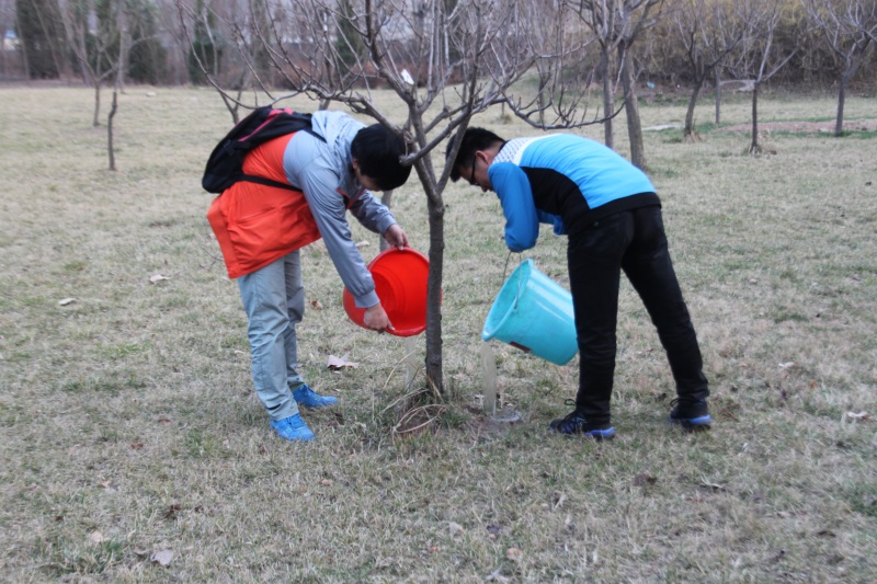 在公司员工干部的带领下,各个志愿者进行了合理的任务分配,紧张有序的“绿色清理”活动开始了。男同学干劲十足从各个地方为我们送来灌溉树苗的生命之水,女同学也不甘落后,她们热情高涨,有条不序的为树木浇灌。经过大家的共同努力,校园的树木吸允了水分,好比刚入校的新生在大学的洗礼之下必能茁壮成长。