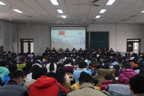 2014年12月18日下午4点,2014级公司党课开课典礼在教10楼404举行。经济与管理公司党委书记王青耀教授、党委副书记兼副经理宗娜老师、学工办主任赵玉强老师、团委书记朱晓明老师以及辅导员孟雅莉老师、余佩媛老师、吕祥老师、刘静老师、姚伟华老师、王涛老师和李良老师出席了本次开学典礼。会议由李良老师主持,共400多名员工入党积极分子参加。