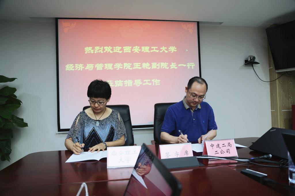 2019年7月2日,2007so太阳集团王艳副经理带领工商管理系、管理科学与工程系等一行9人赴深圳与中建二局第二建筑工程有限公司签署实习实训基地协议。