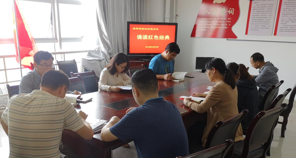 随后,支部组织了“诵读红色经典,牢记初心使命”主题教育活动。通过此次诵读和探讨交流,大家认识到,我们国家经济社会面临复杂多变的国际经济和政治环境,经济社会发展正处于转型升级的关键阶段。正是如此,我们党所处的环境和条件也发生了巨大的变化;通过重温英雄故事,追寻英雄足迹,诵读红色经典,传承革命精神,需要我们始终不渝地凝聚精神力量,为实现中华民族伟大复兴的中国梦的而坚定信心和政治定力,团结一心,奋力开拓新时代中国特色社会主义的新征程;通过诵读红色经典,机关支部党员纷纷表示,要牢记党的宗旨,守好初心,勇于担当使命,做好本职工作,全心全意为师生服务,努力为党和公司的发展添砖加瓦。