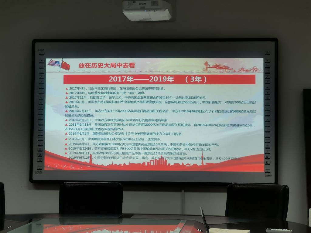 在课堂交流中,各位党员纷纷表示这次党课活动非常及时和必要,让大家系统了解了“中美贸易战”前因后果及其发展的整个过程,受益匪浅。同时大家认为,“中美贸易战”是我国经济社会发展遇到的特殊困难,而且具有很大的不确定性和复杂性。应对“中美贸易战”的唯一途径是通过“不断创新、提质增效”来增强我国经济科技的核心竞争能力。大家表示,要主动运用党的创新理论指导工作实践,推动个人工作能力的提升;更要特别注重调查、分析和解决个人实际工作中存在的问题,进一步做好本职工作,为公司和公司发展尽心出力,为国家发展和民族复兴贡献自己的微薄之力。