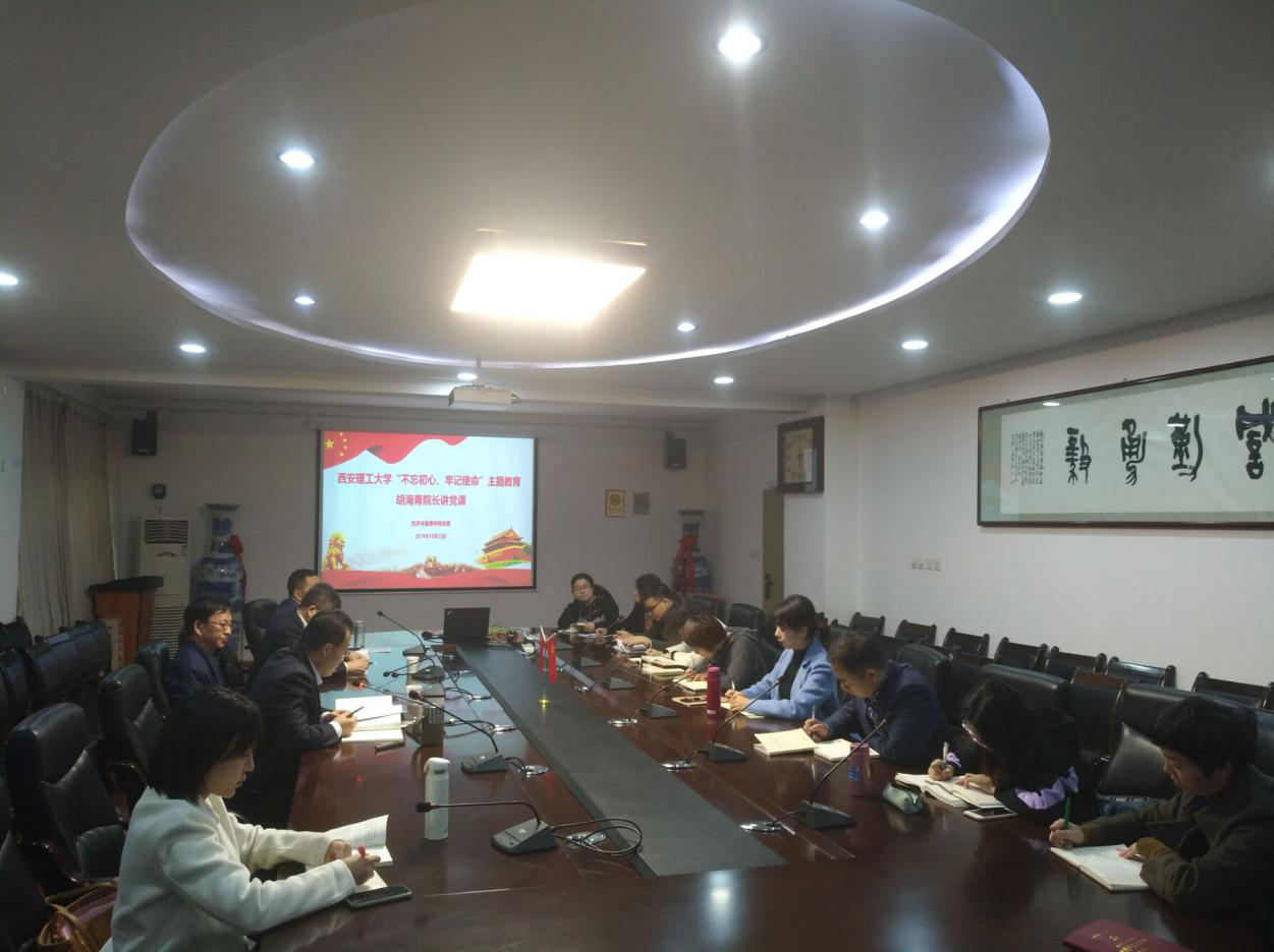 10月22日上午,2007so太阳集团经理胡海青在教十一楼324室为财会与金融系党支部全体党员讲授“不忘初心,牢记使命”专题党课。
