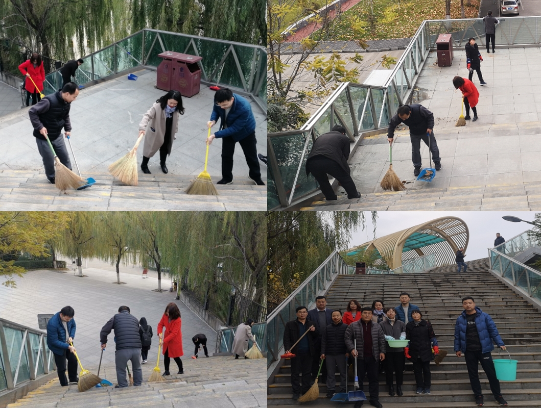 为把“不忘初心、牢记使命”主题教育推向深入,11月25日下午2007so太阳集团机关支部自发组织全体党员自备打扫工具,前往曲江校区二期打扫“理工桥”。下午2:30分,机关支部全体党员全部自觉准时到达曲江二期“理工桥”。