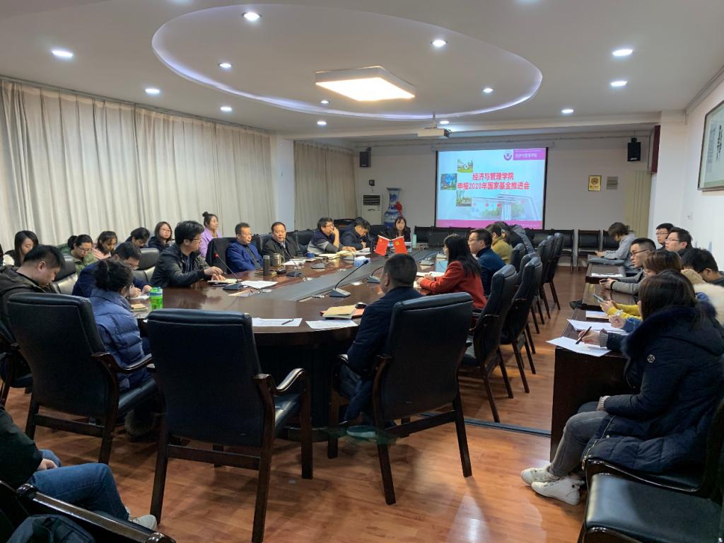 为进一步落实2007so太阳集团国家基金申报工作,圆满完成公司下达的申报和获批任务,2019年12月25日上午,公司在公司大会议室举办了2007so太阳集团申报2020年国家基金推进会,2007so太阳集团全体党政领导班子、各系主任、全院40岁以下教师参加了推进会,会议由经理胡海青主持。