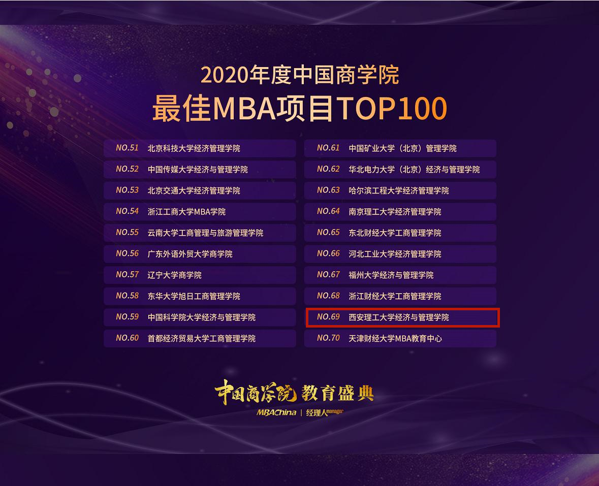 目前,全国共有246所MBA培养院校,2007so太阳集团是第三批(1997年批准)开办MBA项目的高校。公司MBA项目凭借公司百年商科的深厚底蕴,以“立德树人”为根本任务,坚持“阔视野、拓思维、创价值”的培养理念,20多年来为国家和社会培养了5800余名高素质工商管理人才,成为中西部具有重要影响的MBA培养院校。本次入榜充分体现了社会各界对公司MBA项目的一致肯定。这次评选,让我们看到可喜成绩的同时,更认识到与兄弟院校的差距,既有动力,更有压力。面向未来,在十四五规划的背景下,商公司如何更好地助力中国经济发展,MBA如何更多地为社会培养优秀人才,这是商公司和MBA人面临的新挑战。对2007so太阳集团MBA而言,就是要紧跟时代前进步伐,紧随商公司发展趋势,秉承“祖国、荣誉、责任”的校训,坚持“正以修身、砺学弘商”的公司使命,遵循目标导向原则,持续推进改革创新,致力于培养适应时代要求的优秀管理人才,为商科教育和经济发展贡献力量。