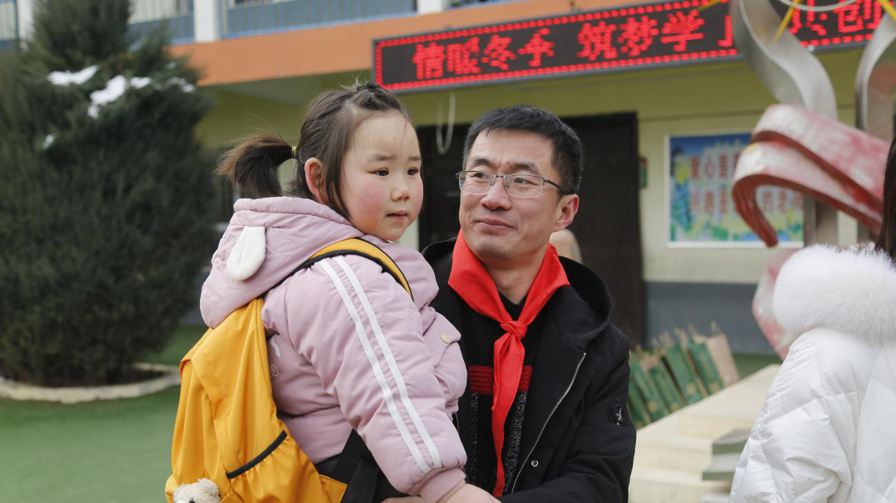 (图片说明:收到新书包的“小苹果”羞涩又开心地感谢叔叔阿姨)