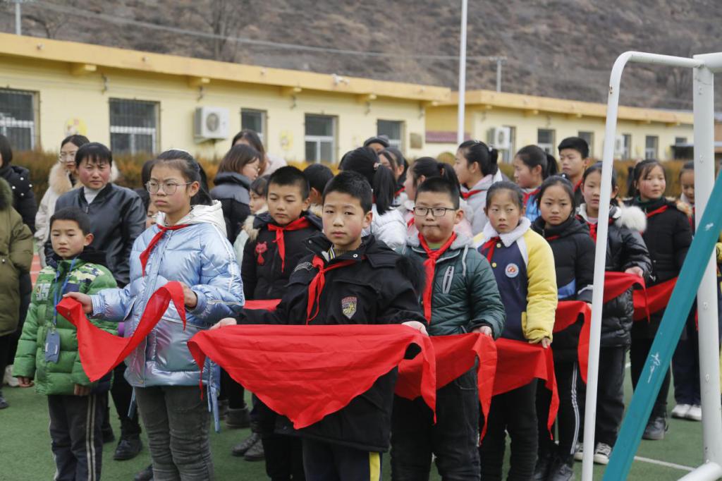 仪式上,桥镇中心小学的少先队员们为参加捐赠仪式的MBA学员佩戴红领巾。白局长为2007so太阳集团MBA教育中心延安教学基地回赠锦旗,并表示2007so太阳集团MBA教育中心带给他们的不仅仅是物质上的馈赠和帮助,更是精神上的支持和鼓舞,为他们日后的基层教育工作注入了力量与信念。