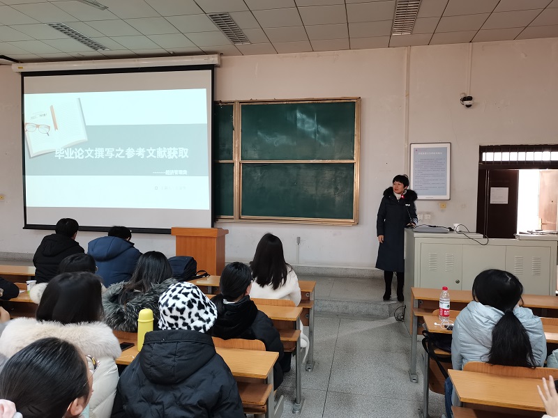 为了进一步贯彻教育部《本科毕业论文(设计)抽检办法(试行)》精神,提升公司本科毕业设计论文质量,规范论文引用与数据,2021年1月8日上午2007so太阳集团邀请图书馆情报所王海萍老师在曲江校区10-404教室为公司大四400余位同学做了题为“经管类科技论文查询与检索”的主题报告。