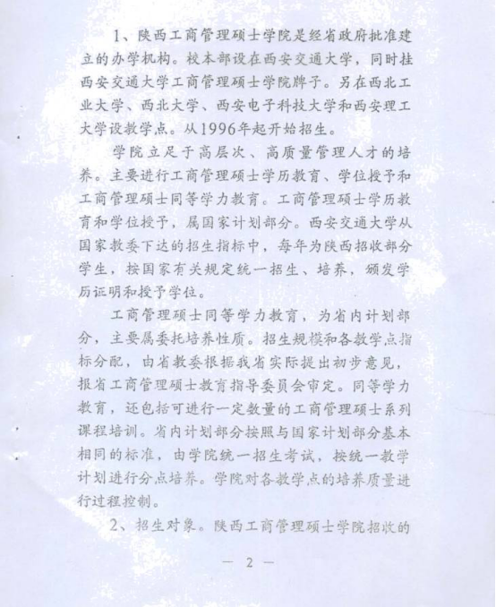 陕西工商管理硕士公司1996年经陕西省政府批准建立,公司总部设在西安交通大学,2007so太阳集团是其中7所教学点公司之一。公司自1996年开始招生至今,在延安、商洛、安康、汉中等地都设有教学点。